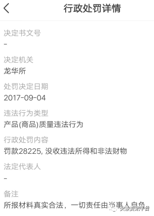 在这一年的9月份,一九爱心因产品(商品)质量存在违法行为遭到了深圳市龙华所处以罚款28225元并没收违法所得和非法财物的行政处罚。