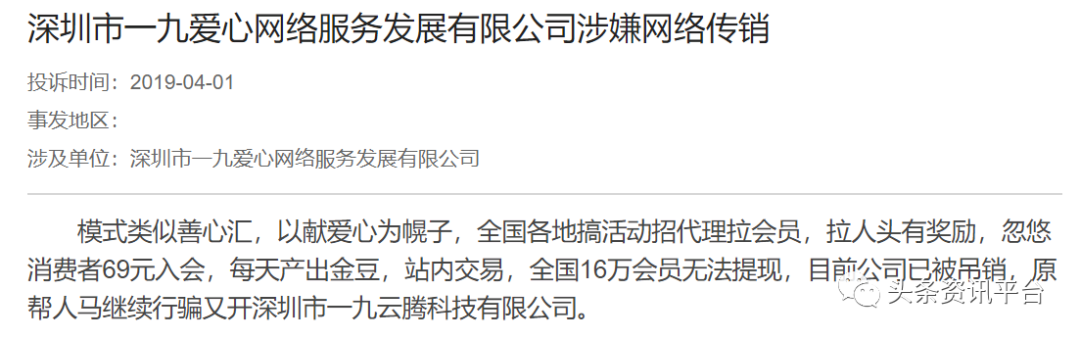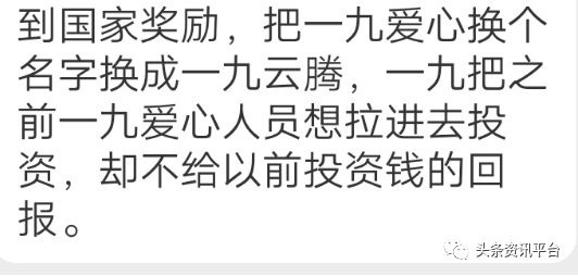 现如今,也有越来越多的受害者站出来抨击指责一九爱心,或质疑一九云腾就是一九爱心的继承者。