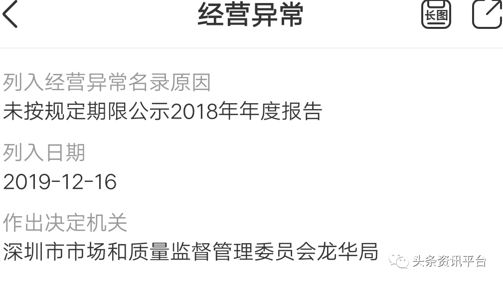 无独有偶,与岑定高相关的另外一家深圳市一九爱心能量科技有限公司,也曾在2019年12月份被深圳市市场和质量监督管理委员会龙华局列入经营异常名录。