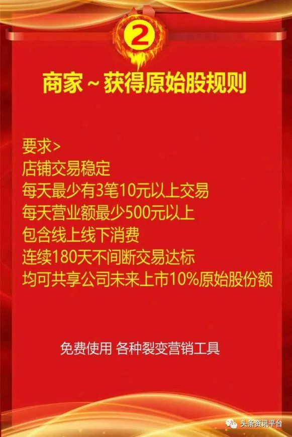 (2)在一九云腾的应用软件上,每天最少有三笔交易,且营业额在500元以上,连续半年的时间,在公司上市后也可以享受10%的原始股。此外,平台还可以帮助商家免费推送广告。