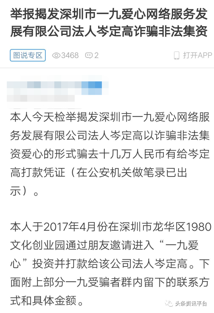 至于一九爱心的受害者们在今后还会如何维权?重操旧业、暗度陈仓的岑定高又能逍遥法外多久?一九云腾是否会步一九爱心的后尘?对此,头条资讯平台将继续保持关注。