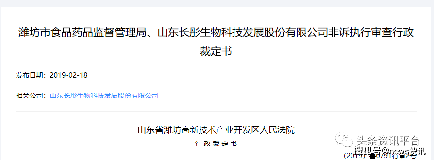 那么这次处罚的后续处理结果如何呢?据《潍坊市食品药品监督管理局、山东长彤生物科技发展股份有限公司非诉执行审查行政裁定书》披露,被执行人山东长彤生物科技发展股份有限公司收到该行政处罚决定后,在规定的期限内既未申请行政复议,也未提起行政诉讼,也未履行行政处罚决定。潍坊市食品药品监督管理局根据我国《行政处罚法》第五十一条第(三)项的规定,申请法院强制执行如下行政处罚决定:1、罚款250000元;2、加处罚款250000元,上述共计500000元。对潍坊市食品药品监督管理局作出的(潍)食药监食罚[2018]4号行政处罚决定第二项,山东省潍坊高新技术产业开发区人民法院准予强制执行。