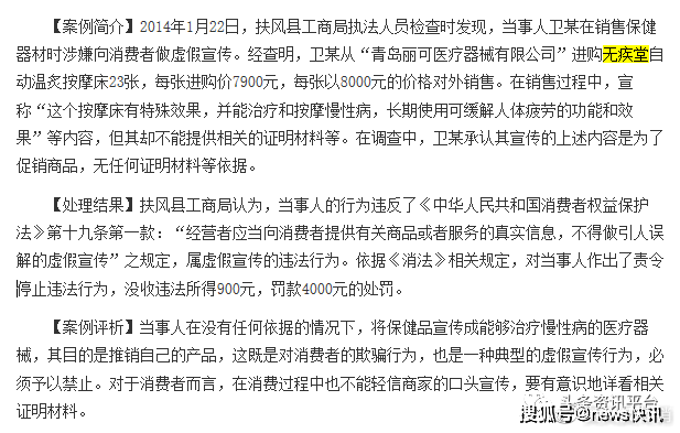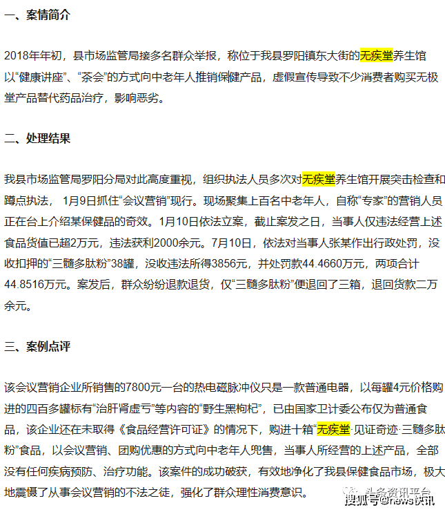 另外,在泰顺县市场监督管理局公示的2018消费维权十大案例中,无疾堂依然处在相当显眼的位置上。