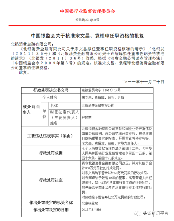 不到两年后,2017年9月1日,北京银监局对北银消费金融又开出了一张900万元的罚单。