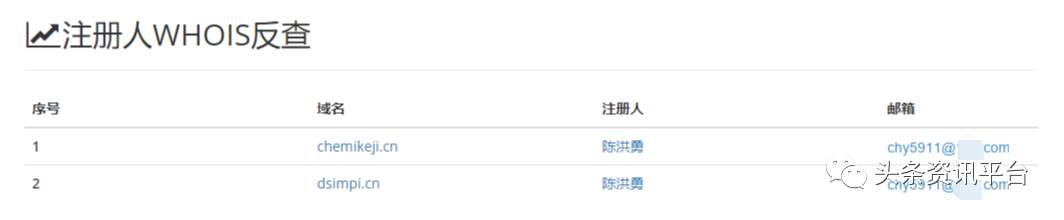 那么西姆币背后的操控人又是谁呢?通过“注册人反查”网站,我们找到了域名“dsimpi.cn”的注册人陈洪勇,其注册邮箱的前几个字符为chy5911。