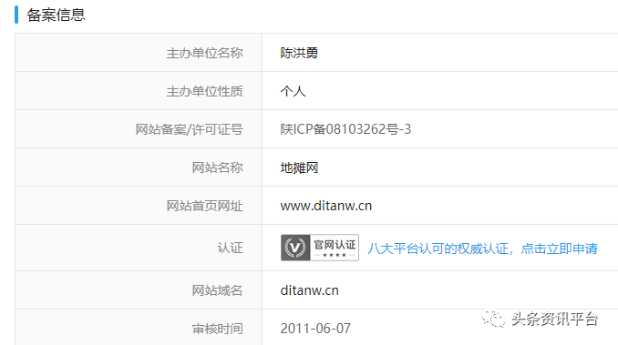 不过,通过另外一家备案查询网站“爱站网”,我们找到了这家备案于2011年的地摊网的备案信息,注册人也正是陈洪勇,备案号为陕ICP备08103262号-3。调查发现,此人还曾注册了备案号为陕ICP备15011634号-1的稻香田网站,以及备案号为津ICP备15001835号-1的嘟嘟生活网站,这些网站的主办单位的性质都是个人,如今,这些网站不是无法打开,就是在点击后显示的是与网站名毫无相干的内容。