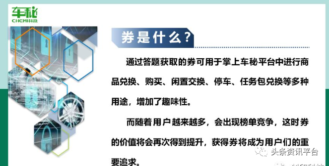 基本的玩法了解了,我们再来看看收益是怎么算出来的,那么,在这里就要先说说卷的价值了。每个人注册认证成功后,平台送一个初级券,30天产12个券(车秘区块链通证),使用券有什么价值?用户通过认证免费获得单车任务包产出车秘券可以进行任务包兑换、停车缴费、汽车保险、汽车维修、汽车装饰或线下流通。也就是说,使用劵就相当于给了用户一笔原始资金作本,满10个就拿去复投,一个月后又可生产12个券,利滚利,一年可赚160多个券。而如果想通过使用劵进行交易,那就还涉及到另外一个概念——认证等级。