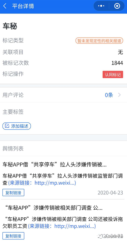 而在腾讯灵鲲金融风险监管平台上,“车秘”这个关键词也已被标记了1844次。