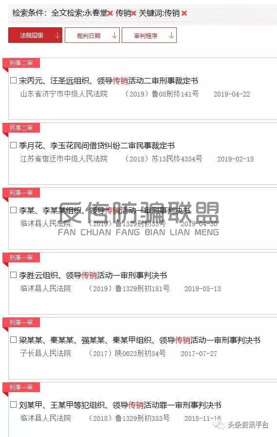 据裁判文书网显示,从2017年到2019年,永春堂福斛国际因涉嫌组织领导传销活动罪发生了多起案件。