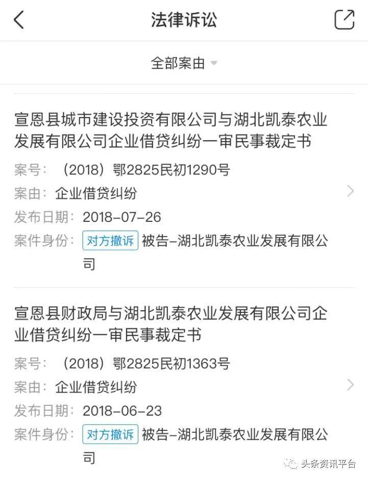 另外,硒圣生物公司曾两次因为企业借贷纠纷分别遭到宣恩县城市建设投资有限公司和宣恩县财政局的起诉,后经过私下处理由原告撤诉收尾。