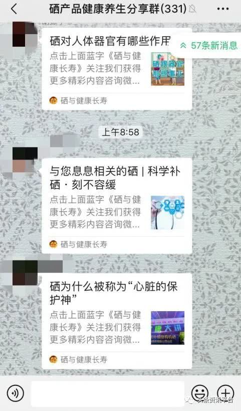 这样的病例只是一小部分,剩下还有很多像糖尿病、胃癌、乳腺癌等疾病的宣传,同时,经销商也会在硒产品分享群里每天发布一些有关硒元素各种功效的推文,以此来推荐公司的产品。