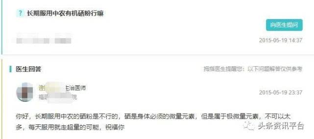 在福建某医院就职的谢医生也表示:硒是身体必需的微量元素,但是属于极微量元素,长期服用硒元素是不行的。