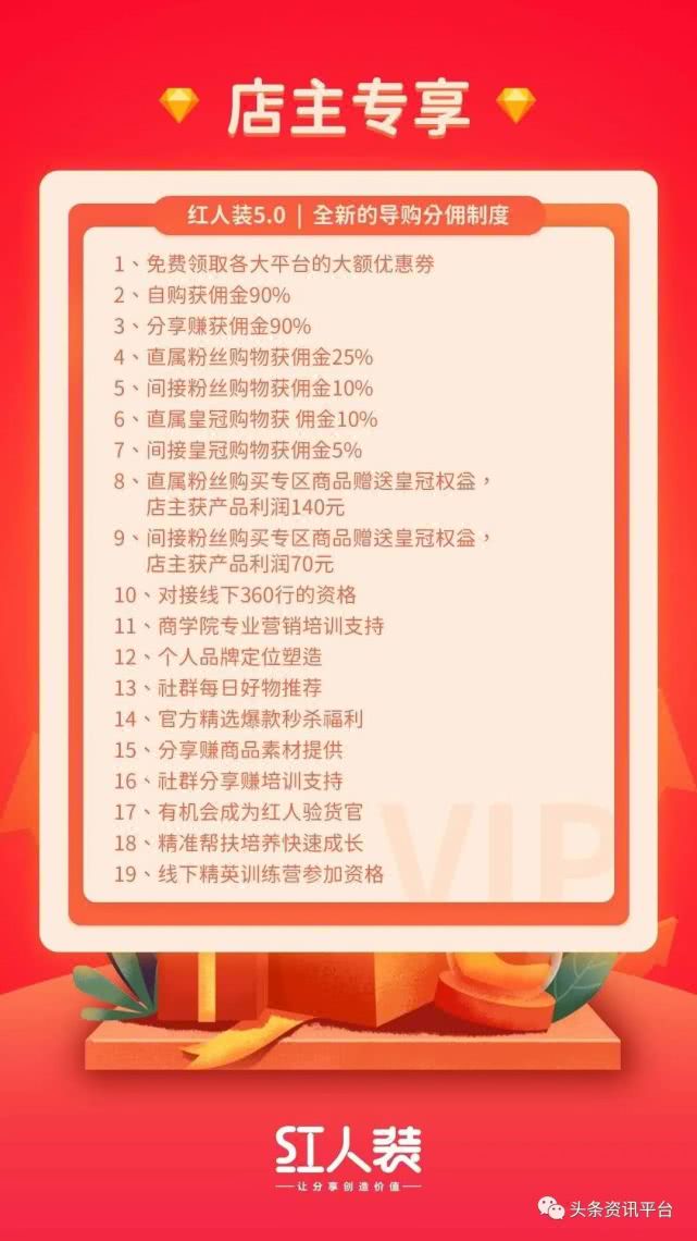 下面,我来了解一下红人装的会员制度。据了解,红人装将消费者分为三个等级,分别是粉丝、皇冠、店主。不论在哪个等级的消费者都可以免费领取各大平台的大额优惠券、商学院专业营销培训支持、社群每日好物推荐以及官方精选爆款秒杀福利。
