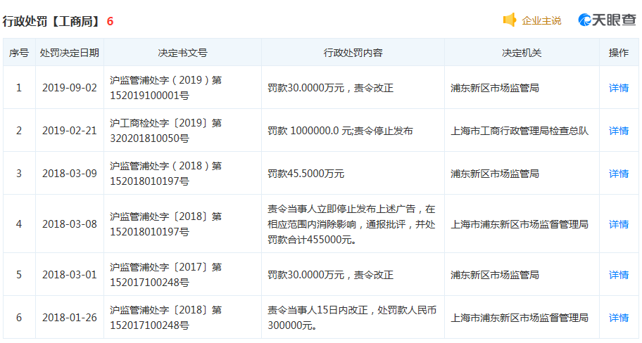 2019年6月,湖南省长沙市开福区市场监管局依据《反不正当竞争法》第二十条下达处罚决定,责令当事人停止虚假宣传行为,并处罚款200万元。