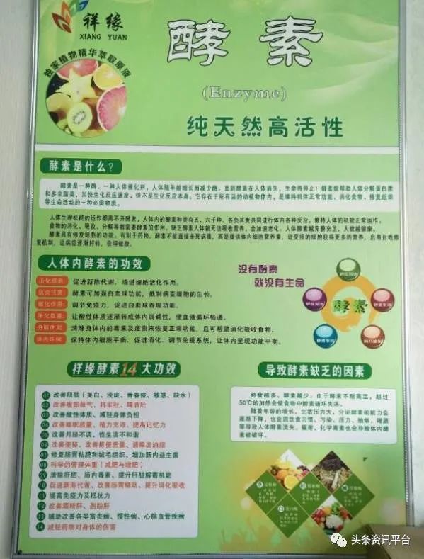 其实,在很久之前,中国生物发酵产业协会在《酵素产品分类导则》中就对酵素给予了官方标准定义。酵素是以动物、植物、菌类等为原料,经微生物发酵制得的含有特定生物活性成分的产品。其具有一般食品的共性,可调节人体机能,适用于特定人群食用,但不具备任何治疗功能的作用,不可当作药品用来治疗疾病。归根结底,酵素不能治病。