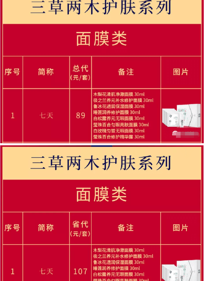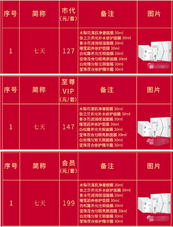 招募低级别代理则是赚取产品的差价,以三草两木面膜类产品七天(一套)不同级别的拿货价为例。