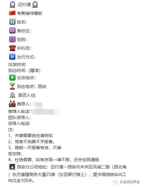 最近一段时间,迈付通正在“跑马圈地”阶段,全国各地的参与者都在积极开会、组织活动,以招募其他人员加入,西安地区在这方面搞得尤为火热,具体的考察接待流程及报销标准如下: