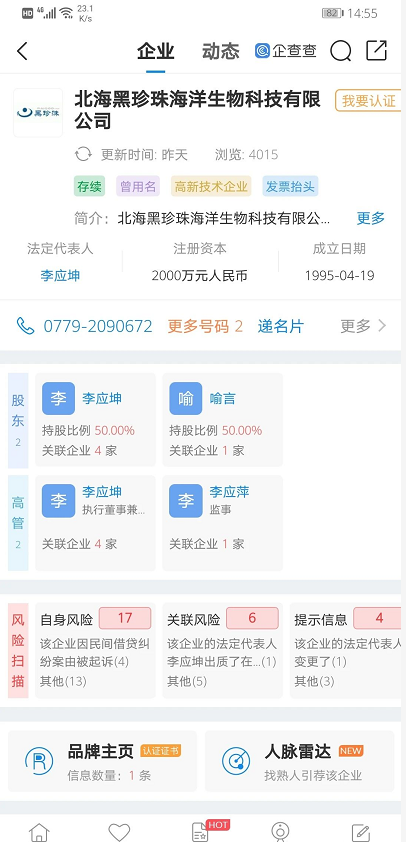 有宣传材料称,上文所提到的北海果果公司其实是北海黑珍珠公司的子公司,淳肌新电商也是隶属于北海黑珍珠公司旗下的电商平台,北海黑珍珠海洋生物科技有限公司董事长李应坤实际上才是淳肌品牌的真正的创始人。
