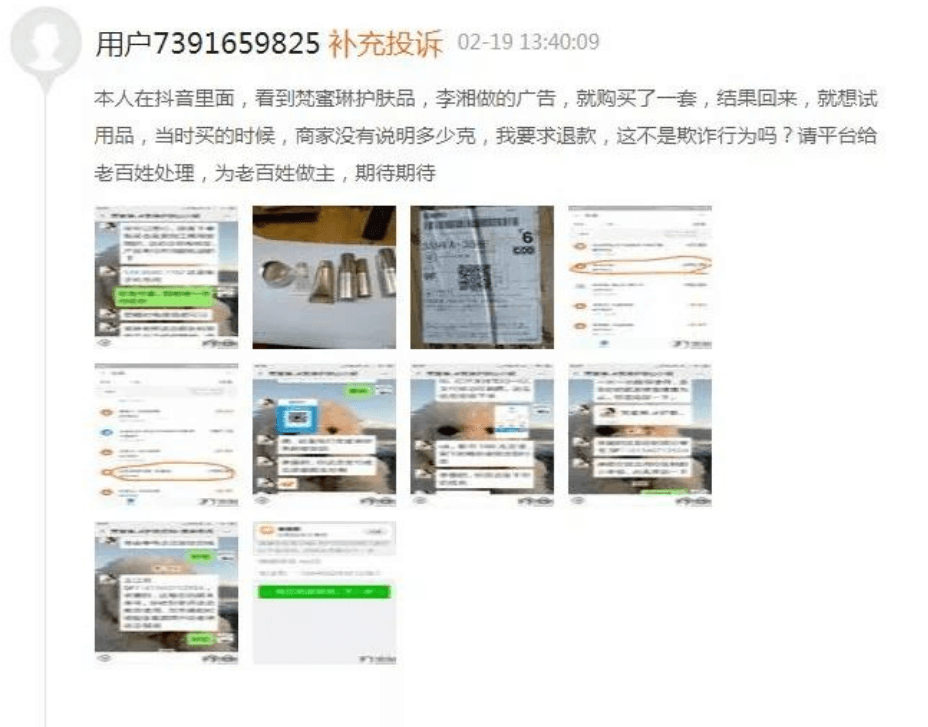 然而,就在《乘风破浪》播出的前一天,该节目的独家冠名商梵蜜琳却被中国经济网报道称,“天价小样频遭质疑‘神仙贵妇三部曲’撞枪禁词。”据中国经济网道称,近期梵蜜琳因“高价位小套盒与视频宣传差异大”、“产品使用后无效”等问题遭遇多名消费者投诉。报道以今年2月份消费者在新浪旗下消费者服务平台黑猫投诉上的案例为例介绍,一消费者以近800元的价格却只买到了梵蜜琳的试用装,并且消费者在购买时,商家没有说明产品克数。因此,该消费者认为梵蜜琳此举属于“欺诈行为”。