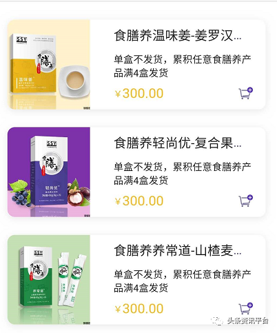 除了上述这款产品外,另外的食膳养轻尚优水果复合果汁饮料、食膳养养常道山楂麦芽植物饮料的标价与发货标准在锦郁商城上也是出奇的一致。