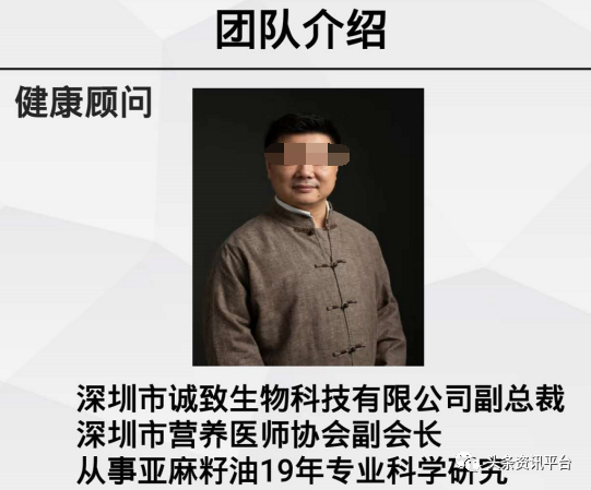 健康顾问则是未标注姓名的深圳诚致生物科技有限公司的副总裁。