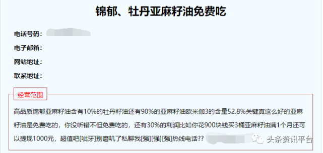 但与此同时,一些不法分子也开始打起了借牡丹籽油之名,行集资诈骗之实的歪主意。比如前段时间被辽宁媒体以《投资“牡丹籽油”盼收益,一瓶油1590元》曝光的汇合牡丹籽油案,再比如近年来一直备受争议的香四海牡丹籽油。希望广大消费者无论是在选择产品,还是选择项目进行投资时,都应擦亮双眼,提高警惕。