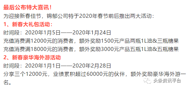 上篇报道中,我们了解到了锦郁商城上的产品价格问题,以及关于锦郁生物牡丹亚麻籽油的宣传问题,本篇报道中,我们再来关注一下锦郁生物在当下所实行的奖金制度,看看“60桶油免费拿”、“锦郁牡丹亚麻籽油免费吃”的说法是不是空穴来风?