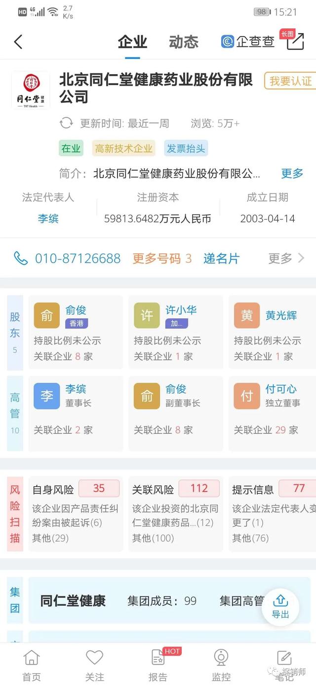 同仁堂健康,成立于2003年,法人李缤,官方网站网址:www.trthealth.com,属台港澳与境内合资企业。