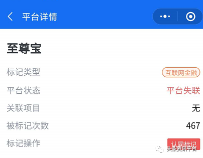 至尊宝的平台状态被标记为平台失联,被标记次数为467次。