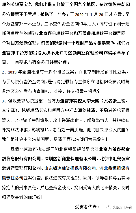 至于万盈睿邦的相关负责人将会迎来怎样的结局?维权者们能否顺利追回自己的投资款?对此,头条资讯平台将继续保持关注。