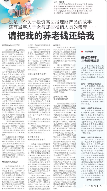 早在2019年1月11日,《鲁中晨报》就曾以《请把我的养老钱还给我》为题,报道了多名淄博市民因与北京中汇宏源资产管理有限公司签订协议,购买北京万盈睿邦企业管理服务有限公司高分红理财产品后,无法正常领取协定分红,本金也无法追回一事。阿倩虽然身处湖南株洲,不在山东淄博当地,但她的遭遇也该篇报道所涉及的内容无外其中。