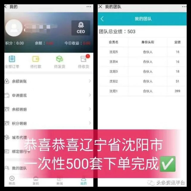 (3)三星CEO:①培养五位CEO领导人即可成为三星CEO。②公司拿出所有新增合伙人订单的每单3元平均分给三星领导人,目前公司仅有唯一一位三星CEO。③团队订单累积达到20000套,同时成为系统创始人,享受每个新增合伙人订单5元奖励。