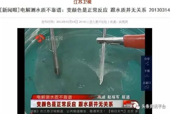 除了在网络上,还有人在现实中也见识到了这样的实验。有当事人在网上如此反映道:“昨天有个朗诗德的推销员来推销净水器,就是用水质电解器使水变色,然后声称自来水有很多重金属,为了健康请购买净水器,刚开始我也相信了,今天上网一查才知道,这个根本不能证明水质的好坏,只能证明水里有杂质……”
