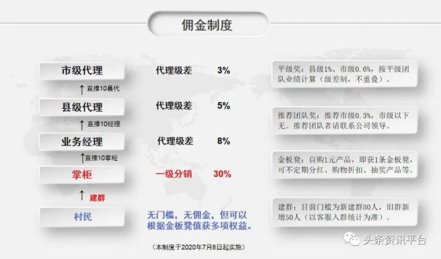 近期,据“华佗村”客服经理透露,为了更好地发展,公司在半个月前用新的代理制度替换了上述的旧代理制度,并于2020年7月8日起实施,无门槛、无佣金、可以根据金板凳值获多项权益是新制度的主要特点。