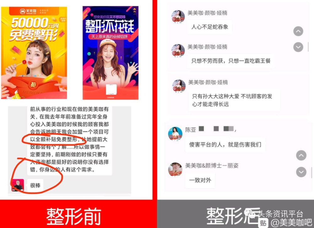 而且这种认为“消费者就是想吃霸王餐”的论调,以及在用户进行整形前后如川剧变脸般的行为,自然也是得到了不少美美咖消费者的口诛笔伐。