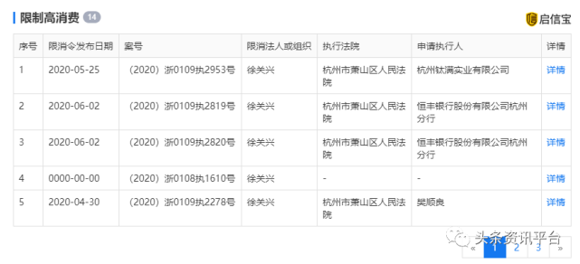 其本人也被杭州市萧山区人民法院出示了多次限制消费令。