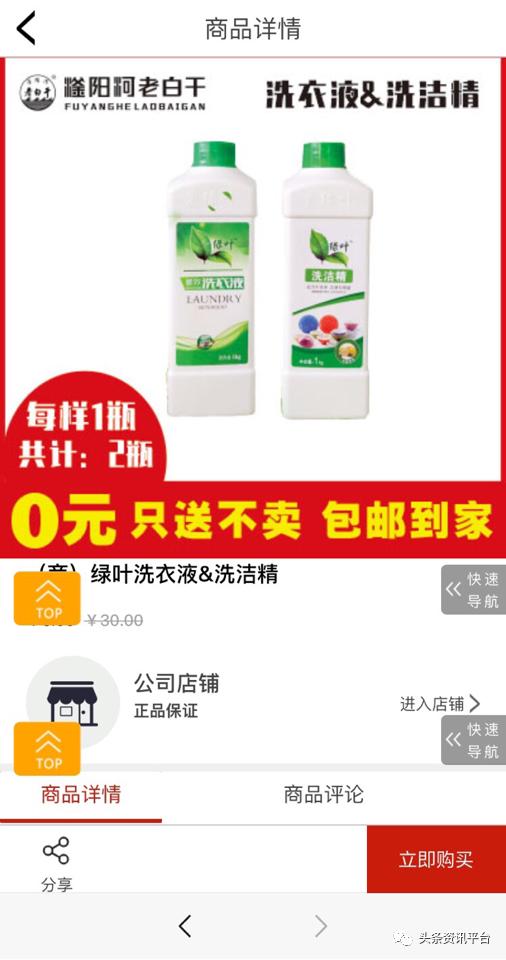 除此之外,我们还看到有经销商在群里表示绿叶店借力滏阳河的字样,对此我们到滏阳河老白干商城中查看,找到了名为“绿叶”的洗衣液和洗洁精。