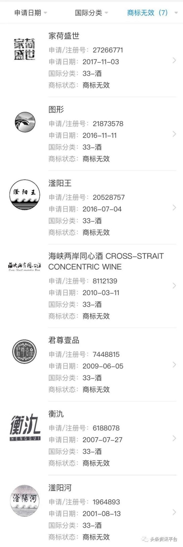 目前据天眼查上面显示“滏阳王”、“滏阳河”、“家荷盛世”等多个商标都处于无效状态。