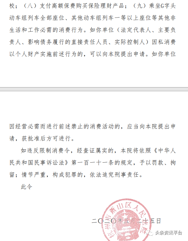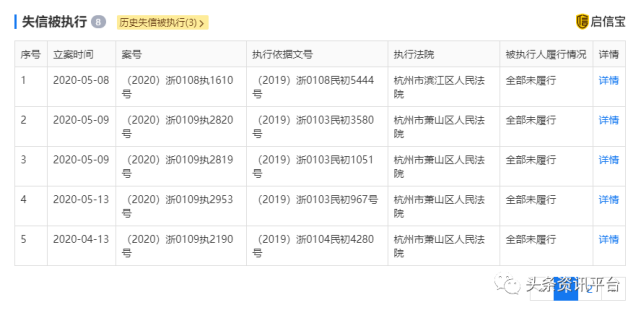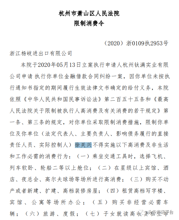 其本人也被杭州市萧山区人民法院出示了多次限制消费令。