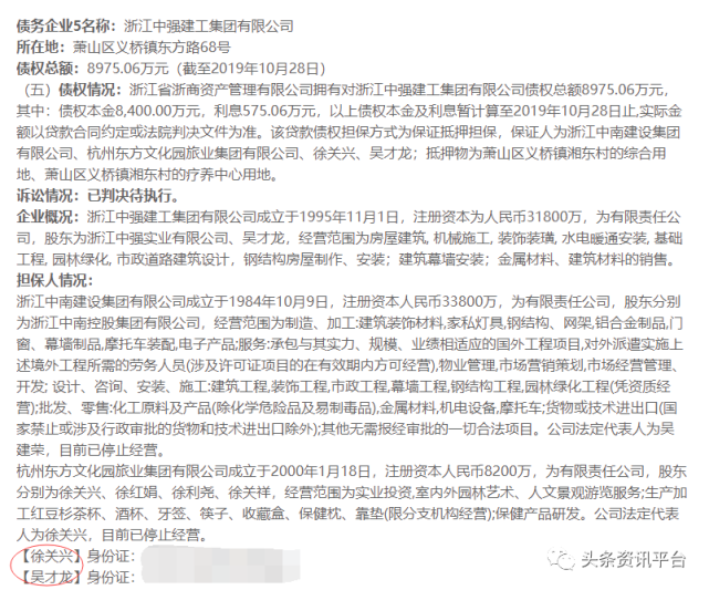 在相关裁判文书当中频频出现的吴才龙,又是何许人也呢?经查,浙江中强建工集团有限公司法人为吴才龙,而徐关兴则是浙江中强建工集团董事局主席。由此,足见此二人关联之密切。