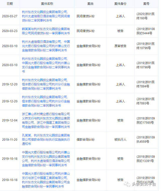 实控人已成失信人,杭州东方文化园旅业集团有限公司在近几年来自然也是问题重重,不仅屡次被法院公示为被执行人,还屡次拒不履行法律文书确定的义务。