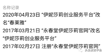 值得一提的是,上述这些被抽查的、挂着伊妮莎莉牌子的产品的生产企业名称为潍坊市伊妮莎莉生物科技有限公司,关于这家公司与春来雅的渊源,我们也在前文中提到过,刘树栋是其中的关联人。而且,微信公众号“春莱雅”的原名也正是“伊妮莎莉创业服务平台”,这是一个个人认证的公众号,认证人是一位来自山东的女性。由此可见,双方的合作,已是由来已久。