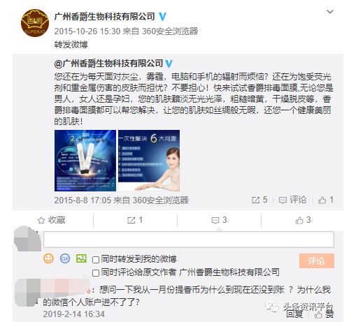 至于以“打造一个最有社会责任感、最有爱心的民族企业”为企业目标,以“搭建一个联结消费者与众企业共同分享成果的大平台”为企业愿景的香爵在今后会如何发展?相关投诉事件会不会继续上演?对此,头条资讯平台将继续保持关注。