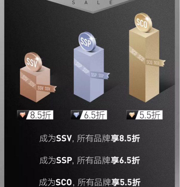 据悉,希柔一共有三个级别:SSV、SSP、SCO,分别享受在平台购物8.5折,6.5折和5.5折。不仅如此,与其他平台不同,希柔还有三种“玩法”。第一种玩法就是自购+销售模式。0门槛积累制度,当累计买卖到5000即可达到SSP(高级合伙人),达到6.5折;累计买卖到50000即可达到SCO(联合创始人),达到5.5折。