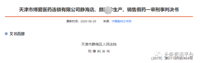 无独有偶,天津市博爱医药连锁有限公司第十店也曾因销售假药案遭到了天津市河西区市场监督管理局的公示。