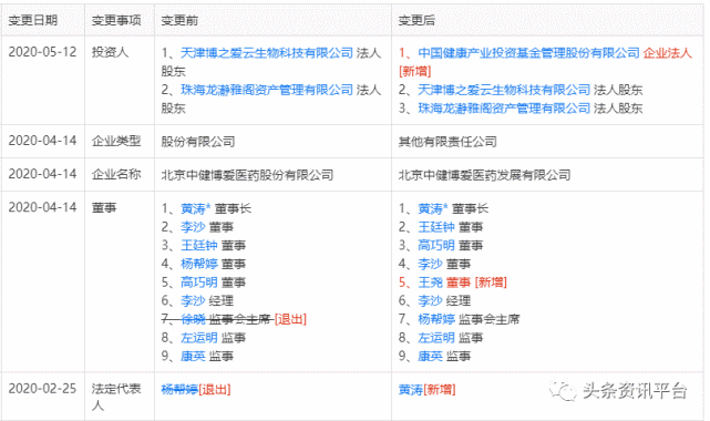 经查,北京中健博爱医药股份有限公司(原名:北京中健博爱医药发展有限公司)成立于2019年12月3日,法定代表人黄涛,股东有珠海龙瀞雅阁资产管理有限公司、天津博之爱云生物科技有限公司和中国健康产业投资基金管理股份有限公司(大股东),据2019年度报告显示,该公司注册资本1000万元,实缴出资额为0元,参保员工为1人。