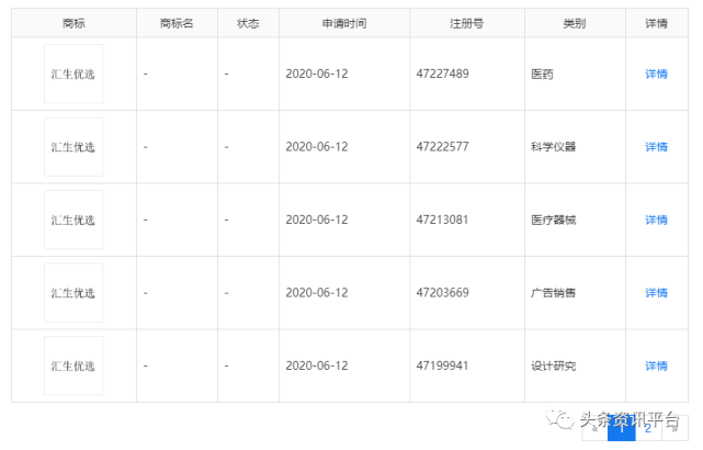 据启信宝显示,目前汇生国际公司所申请的一系列带有“汇生优选”字样的商标,都还处于申请收文的阶段。