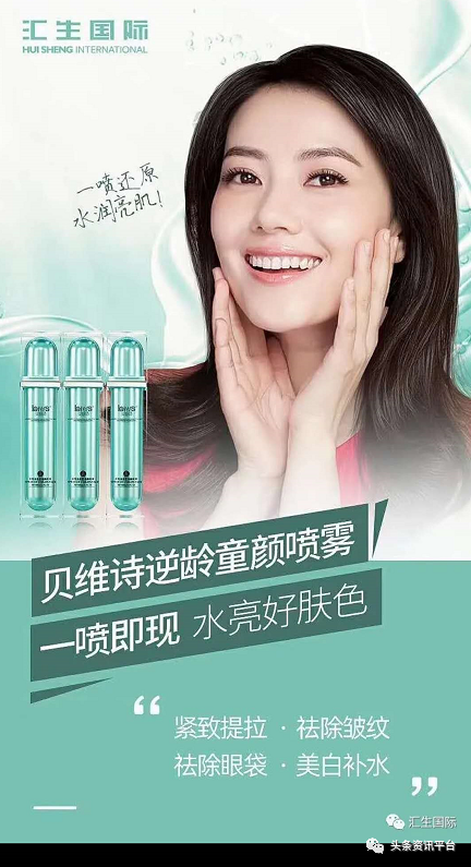 在产品方面,汇生国际公司将希望寄托在贝维诗精选逆龄童颜喷雾、玉肌嫩肤原液、氨基酸洗面奶、医用冷敷贴、贵妇膏等5款爆款产品的身上。