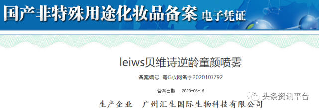 但正如前文所述,汇生国际公司在2020年6月备案的贝维诗逆龄童颜喷雾属于非特殊用化妆品,然而,汇生国际的官方微信公众号却为该产品标注出了美白功效,这显然属于虚假宣传。