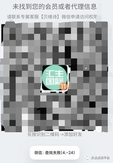 进入2020年8月后,汇生国际的官方客服的微信号“汇生国际素材号”也出现了问题,用户在扫描后也已无法添加。